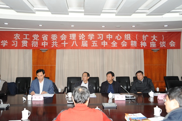2015年12月4日,农工党辽宁省委会理论学习中心组(扩大)召开学习贯彻中共十八届五中全会精神专题座谈会。省委会主委唐建武,省委会副主委赵午、朱航,座谈会由省委会副主委赵午主持。