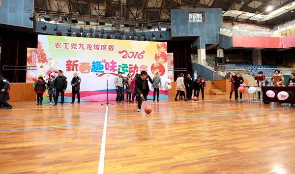 在2016年春节即将来临之际,农工党九龙坡区委会通过举行趣味运动会的形式,让全区党员欢聚一堂,畅叙友谊,同庆佳节,共谋发展。9个支部的党员分别组成红、黄、蓝、绿四个方队,秉承“友谊第一,比赛第二”的原则,同心协力完成了“赶小猪”、“打沙包”、“端乒乓球”、“抢板凳”等趣味运动,既活动了筋骨,增强了运动乐趣,又增进了友谊,增强了团队协作意识。