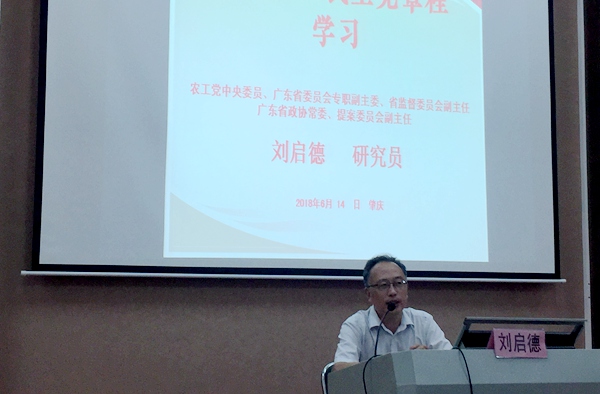 201889日是中国农工民主党88周岁的生日。是日下午,云浮市基层委员会在罗定市博物馆举办三学一讲专题讲座。省委会专职副主委刘启德、中共罗定市委统战部副部长陈金土应邀参加。云浮市基层委员会主委罗立旷主持讲座并讲话。
