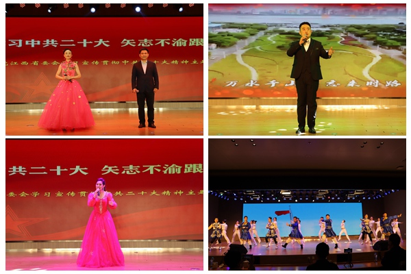 比赛期间,党员们与江西师范大学健美操队的运动健儿们还带来了精彩的歌舞表演。