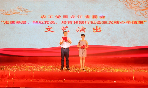 北国八月风光美,稻谷饱满丰收望。2016年8月31日,农工党黑龙江省委会在农工党中央百场主题宣讲再次走进黑龙江之际,在省社会主义学院二楼报告厅举行以“走进基层、贴近党员,培育和践行社会主义核心价值观”为主题的文艺演出。中共黑龙江省纪检委驻中共黑龙江省委统战部纪检组组长李凡同志,黑龙江省龙江剧院院长杨晓全先生,中共黑龙江省委统战部办公室主任孙学长同志应邀观看演出,农工党黑龙江省委会驻会副主委刘长青、秘书长孔令全,农工党中央宣传部信息处处长谢英伟等观看了演出。