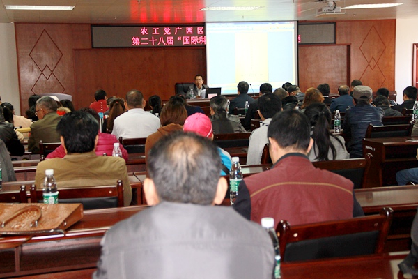 2016年11月11日,农工党广西区委会、南宁市委会联合在南宁市残疾人活动中心举办第28届“国际科学与和平周”活动。农工党广西区委会专职副主委何玉庭出席活动。
