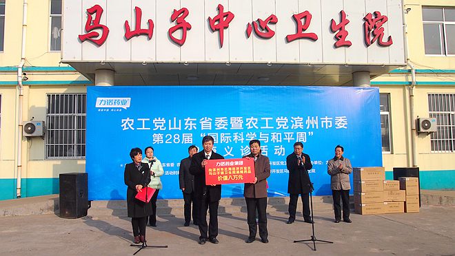 活动启动仪式上,滨州市北海经济开发区党工委委员、党群部部长杨新国首先发表了热情洋溢的欢迎辞。山东省政协常委、农工党山东省委会秘书长王军就开展健康义诊活动的意义、目的和要求作了重要讲话。力诺药业集团慷慨解囊,向马山子镇卫生院无偿捐赠八万余元的药品。