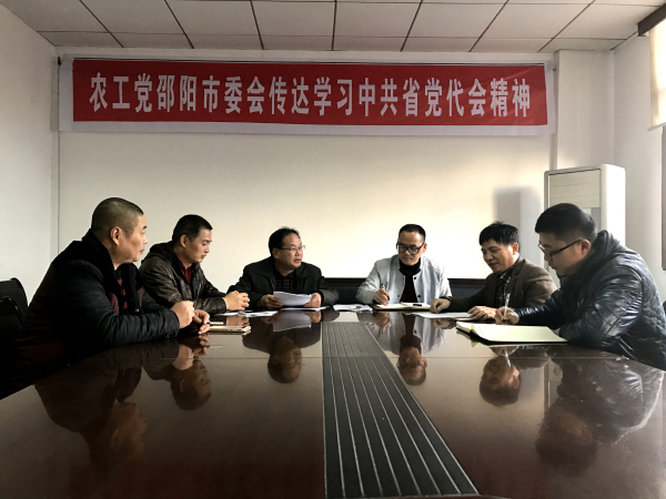 12月6日,受农工党邵阳市委会主委、市住房公积金管理中心主任毛学雄委托,专职副主委赵忠明主持召开市委会议,组织班子成员和全体机关干部专题学习中共湖南省第十一次党代会精神。市政协副主席蒋德安出席并讲话。