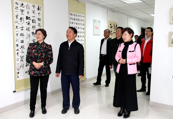 王莉霞还参观了农工党内蒙古区委会成立30周年书画摄影展部分书画作品。王莉霞在一幅蒙古族文字书法作品前驻足良久。她说,通过这幅字能够体会到蒙古族文字表现出的文化气息和特有的美感,并称赞农工党内蒙古区委会机关浓厚的文化氛围和人才济济。她希望农工党内蒙古区委会能够秉承“长期共存、互相监督、肝胆相照、荣辱与共”的爱国统一战线方针,继续发挥民主党派人才智力优势,围绕中心,服务大局,认真履行好政治协商、民主监督和参政议政职能,为自治区经济社会发展做出更大的贡献。