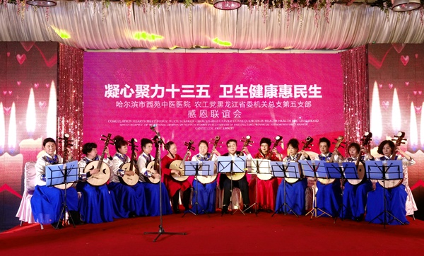 2017年1月6日下午,哈尔滨西苑中医医院、农工党黑龙江省委会机关总支第五支部“凝心聚力十三五·卫生健康惠民生”感恩联谊会在省社会主义学院三楼阳光大厅举行。黑龙江省政协副秘书长、农工党黑龙江省委会驻会副主委刘长青,哈尔滨市政协副秘书长、农工党哈尔滨市委会主委刘柏辉出席活动。农工党黑龙江省委会机关总支五支部副主委、哈尔滨西苑中医院院长崔红致辞。