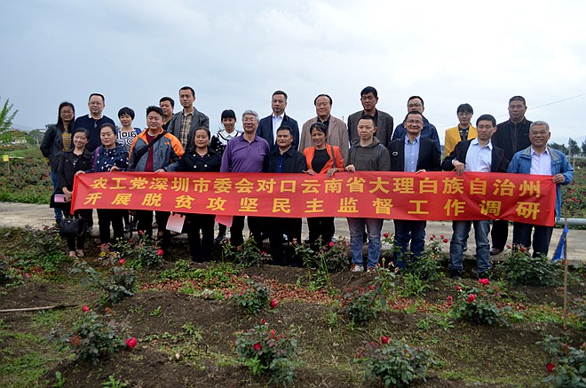 2017年4月24日至27日,由农工党深圳市委会主委、市卫计委副主任常巨平,市委会副主委、广东省仁人律师事务所合伙人樊成玮,市委会原主委刘家琛,以及庹兵、吴先宏、胡任重、袁涛等农工党党员企业家组成的农工党深圳市委会调研组赴大理州委开展脱贫攻坚民主监督调研。此次调研是为了举全党之力协助云南省打赢脱贫攻坚战,根据农工党中央安排,由农工党深圳市委会对口大理州开展脱贫攻坚民主监督工作。