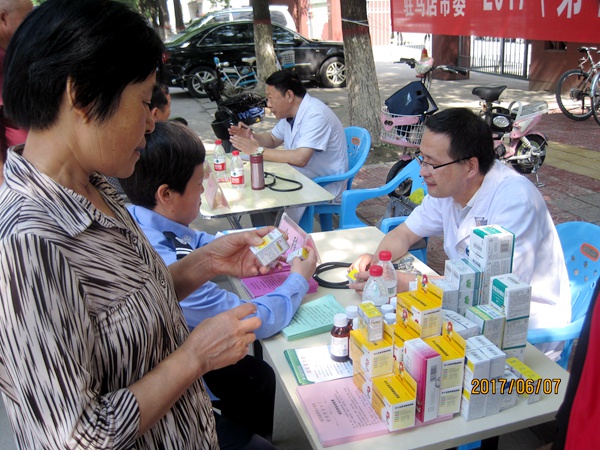 2017年6月7日,农工党驻马店市委会组织医卫界党员在市解放大道开展了“送医、送药、送健康”义诊活动。
