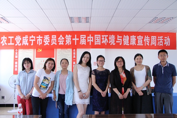 2017年6月7日下午,农工党咸宁市委会组织党员在咸安区永安办事处车站路社区承办了第十届中国环境与健康宣传周活动,通过开展“空气质量与健康”知识讲座及空气质量检测、医疗健康服务咨询及送医送药活动及环保知识宣传等三大主题活动落实了农工党中央实施“宣传周”活动“空气质量与健康”的主题。农工党咸宁市委会专职副主委余艳萍参加活动。