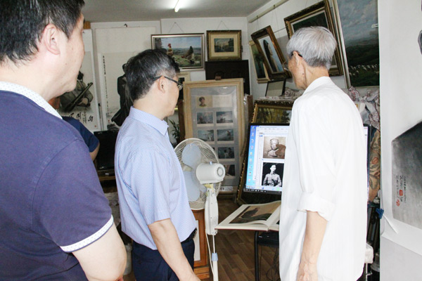 刘三多先生热情接待了严主委一行,感谢领导们的登门看望,他向各位领导介绍了邓演达大型画像的创作情况,刘老先生从网上收集了大量的邓演达画像和资料,最终确定了创作的方向和思路,目前画像大的架构基本完成。严主委听了介绍和观摩了邓演达画像后,高度肯定了刘先生的创作,对老党员深厚的农工情和孜孜不倦的艺术的追求深表敬意,对画像的后期修改也提了一些意见和建议,他希望刘老在保重身体的前提下,继续完善邓演达大型画像作品,塑造好邓演达的光辉伟大形象,激励一代代农工党员继续奋斗、砥砺前进。(陈凯)
