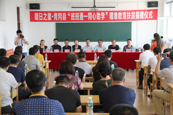 捐赠仪式在青冈县祯祥镇一中举行。仪式上,农工党山东省委会、农工党黑龙江省委会、明日之星教育基金会向青冈县3个实验班和39所中小学捐赠价值60万元的平板电脑、学习软件、学习卡等班班通教辅物资。