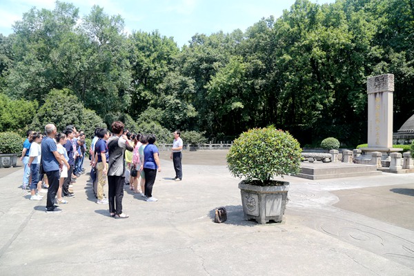 第二天,作为一项坚持多年的传统,农工党无锡市委会副主委兼秘书长汤忠元带领新党员们赴南京中山陵拜谒邓演达烈士墓。学员们怀着无比崇敬的心情聆听了邓演达同志的生平简介,在墓前默哀致敬,表达了对先烈的无限缅怀之情。之后学员们又赴南京雨花台烈士纪念馆观看邓演达烈士展区,重温那段波澜壮阔的历史。