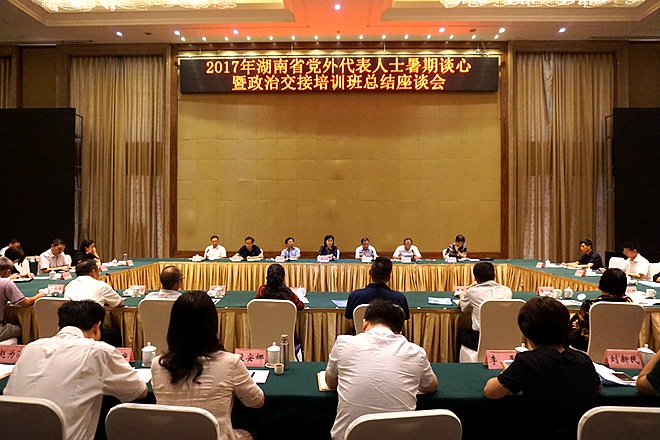 8月3日,在2017年党外人士暑期谈心暨政治交接培训班总结座谈会上,张灼华代表农工党湖南省委会发言,他结合本次暑期谈心暨政治交接培训班的主题,谈了三点体会:一是进一步继承和弘扬优良传统,核心是要坚持中国共产党的领导,坚持走中国特色社会主义道路。二是进一步加强思想政治建设,深化政治交接,为中共十九大召开营造良好氛围。三是进一步凝聚政治共识,汇聚各方力量,充分认识我国发展取得的重大成就,不断增强“四个自信”。(办公室 文武)