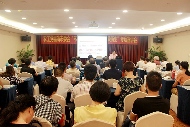 2017年8月5日,农工党福清市委会举办“不忘合作初心,重温光荣历史”专项宣讲会暨2017年党务工作座谈会。农工党福州市委会原主委陈震宙、郑新清,中共福清市委统战部常务副部长何文金应邀出席会议。福清市各兄弟党派、工商联、台联负责人、农工党福清市委会正副主委、市委委员、党员约80多人参加会议。