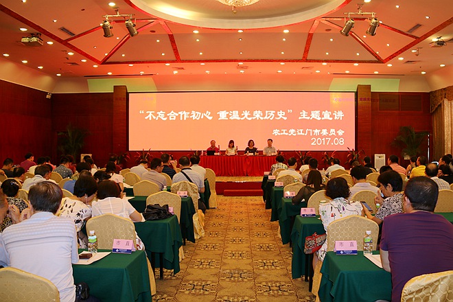2017年8月5日下午,江门市委会在党庆日前夕举办“不忘合作初心,重温光荣历史”宣讲会。按照广东省委会开展坚持和发展中国特色社会主义学习实践活动工作规划,农工党江门市委会2017年积极开展“不忘合作初心,继续携手前进”专题教育,将之作为学习实践活动的重要内容和载体。