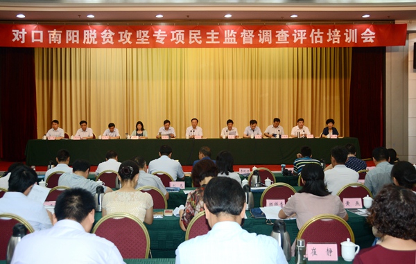 2017年8月17日至24日,按照《中国农工民主党河南省委员会对口南阳市开展脱贫攻坚专项民主监督工作实施方案》的要求,农工党河南省委会组织以新乡医学院150名师生为主体,农工党河南省委会机关、省政协民族宗教委员会、南阳市政协和农工党南阳市委会等单位人员参与的联合调查评估组,对南阳市的国家级贫困县南召、内乡、镇平、淅川、社旗、桐柏及省级贫困县方城县开展为期一周的脱贫攻坚专项民主监督调查评估。