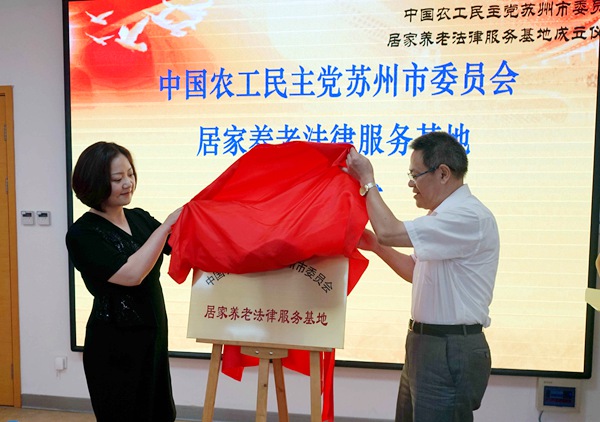 2017年8月24日下午,由农工党苏州市委会社会与法制工委主办、姑苏区工委协办的农工党苏州市委会居家养老法律服务基地和居家养老志愿者服务队成立仪式在苏州市姑苏区“居家乐”养老服务中心举行。苏州市政协副主席、农工党苏州市委会主委周俊,中共姑苏区委常委、保护区党工委委员、统战部部长季珉,农工党苏州市委会副主委兼秘书长张健红,吴中区司法局副局长、农工党苏州市委会社会与法制工委副主任王伟男,中共姑苏区委统战部业务处处长袁洁,姑苏区居家乐养老服务中心主任刘俊秋等领导出席仪式。活动由姑苏区政协副主席、农工党苏州市委会副主委、姑苏区工委主任曹源主持。