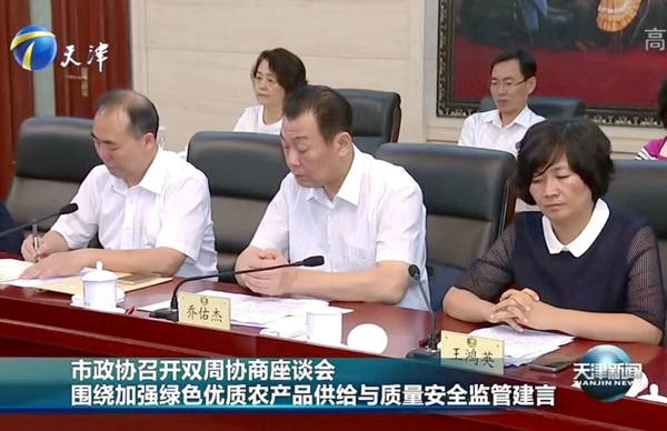 201794日,天津市政协召开双周协商座谈会,围绕“加强绿色优质农产品供给与质量安全监管,保证吃得安全吃得放心”协商建言。天津市政协副主席、农工党天津市委会主委沈中阳出席会议。市委会副主委乔佑杰代表市委会发言。农工党党员、市政协委员王鸿英和宋立刚也在会上做了发言。