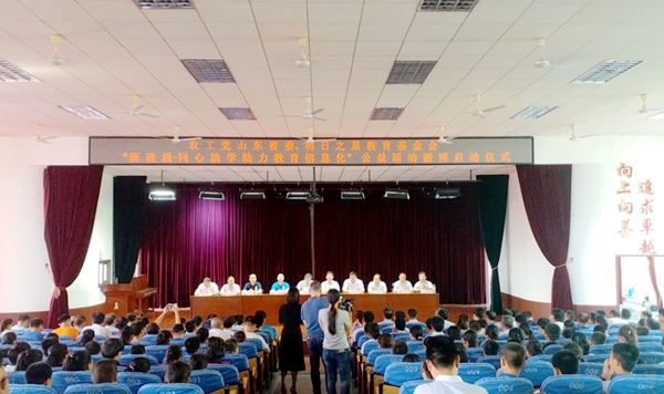 2017年9月22日上午,农工党山东省委会、明日之星教育基金会“班班通—同心助学助力教育信息化”公益活动捐赠仪式,在淄博市临淄区第二中学举行。山东省政协常委、农工党山东省委会专职副主委王军,山东省工商联副主席、明日之星教育基金会名誉会长宗立成,明日之星教育基金会会长张明勇,淄博市委统战部副部长荣先锋,农工党淄博市委会主委张京河、农工党山东省委会参政议政部副部长侯波涛、农工党淄博市委会副主委张振宝参加了捐赠活动。