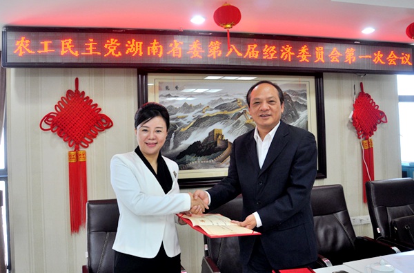 龚振湘代表省委会分别为省委会第八届经济委员会的主任、副主任颁发聘书。