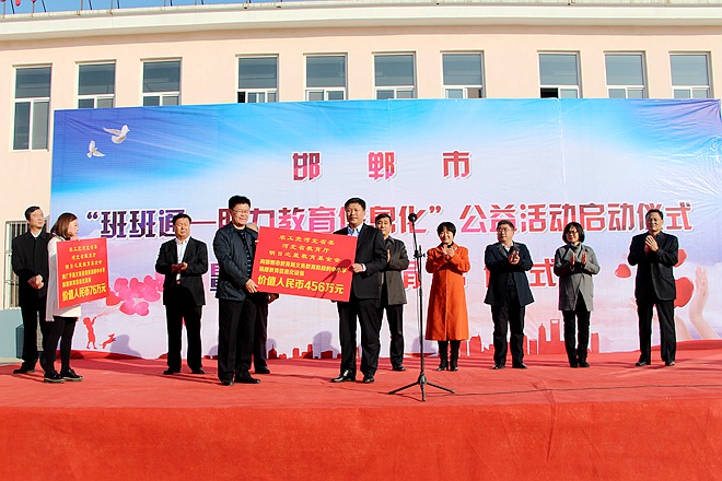 在启动仪式上,明日之星公益基金会向邯郸市教育局和广平县教育局分别捐赠了价值456万元和76万元的教育信息化设备。
