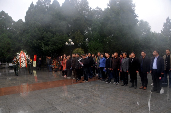 17日下午,参观完红二十五军军政机构旧址,党员们在孙学龙副主委的带领下瞻仰红军广场,冒着大雨沿着台阶拾级而上,看见巍峨的革命烈士纪念塔,在苍松翠柏的映衬下,显得格外庄严肃穆,刘伯承元帅题写的“燎原星火”四个大字遒劲有力。在革命烈士纪念塔前,省委会向红军烈士敬献花篮仪式在雨中举行,由农工党安徽省委会组织部部长王国祥主持。两名武警战士抬起花篮,正步来到革命烈士纪念塔前,将花篮安放在纪念塔基座上。农工党安徽省委会副主委、六安市委会主委孙学龙缓缓走上前去,悉心整理花篮缎带。面向革命烈士纪念塔,党员们深深三鞠躬,表达了对革命烈士的深切缅怀和无限敬仰。随后,我们瞻仰了红军纪念堂,拜谒了红军墓,参观了金寨县革命博物馆。