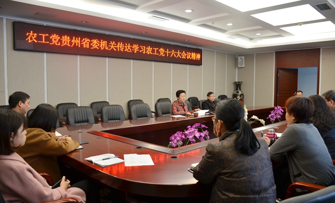2017年12月4日 ,农工党贵州省委会机关召开会议,传达学习中国农工民主党第十六次全国代表大会会议精神,农工党贵州省委会专职副主委黄惠玲出席会议。会议由农工党贵州省委会秘书长蒙爱军主持。
