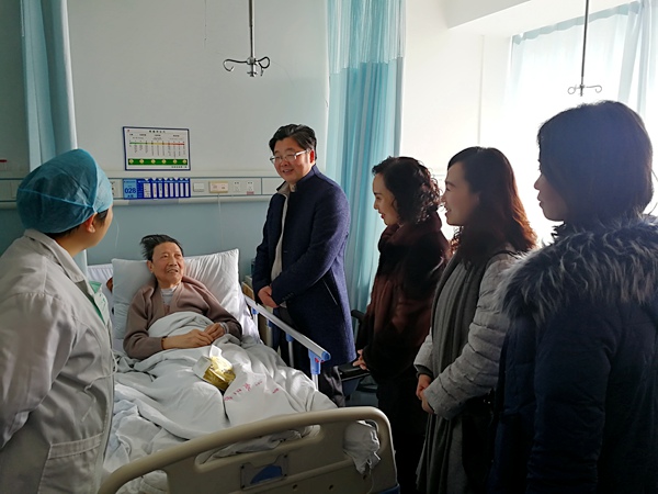 201818日下午,农工党绵阳市委会主委沈其霖在驻会副主委李晖、市中心医院二支部主委禹世福及机关专干的陪同下,赴市中心医院探望生病住院的老党员张启武。