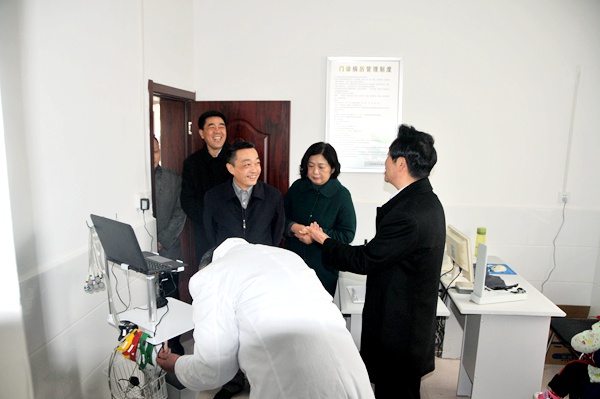 仪式结束后,牛立文一行实地察看了村卫生室的运行情况和家庭医生签约服务工作。在整齐干净的卫生诊断室中,村医正在熟练操作合肥第一人民医院帮扶投入的智慧医疗、远程诊治设备,让农民足不出村,就能享受大城市名医专家的诊断,大大提高了中汤村的医疗服务水平。(宋海珊)