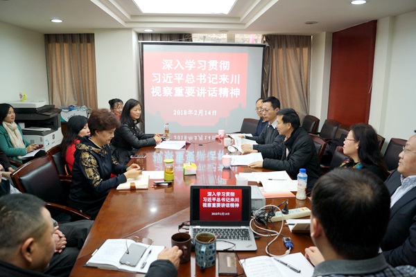 2018年2月14日,农工党成都市委会机关召开专题会议,深入学习贯彻习近平总书记来川视察重要讲话精神。市委会主委甘华田主持会议并讲话,副主委池雷霆、陆志明、尹如铁、胡伟峰参加了会议。