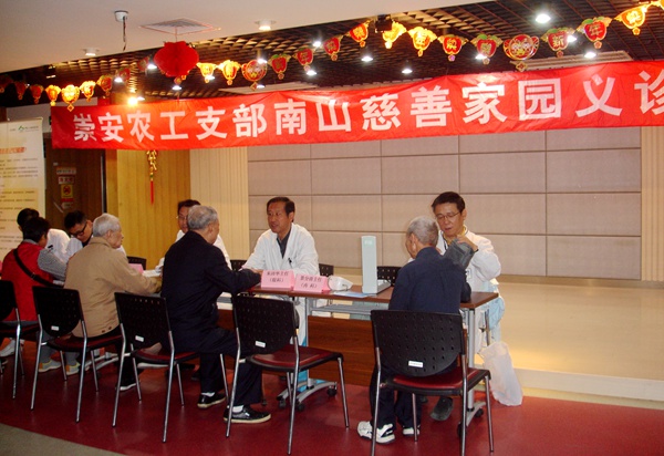 2015年10月13日上午,位于锡兴路上的南山慈善家园内,丹桂飘香,金风送爽。一早,慈善家园的活动室前,老人们就排成一队,有的连早饭都不吃,他们是专门前来等候农工党的医生的!