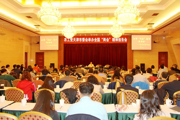 2018年3月30日,农工党天津市委会在天津市政协俱乐部举办全国两会精神报告会。市委会副主委许洪玲,张智龙出席。会议由市委会专职副主委兼秘书长王毅斋主持。