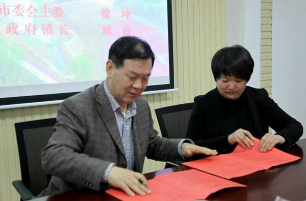 徐坤和殷培文为农工党泰安市委会专家工作站揭牌。座谈会上,徐坤作了交流发言,并与翟镇人民政府签订了农工党泰安市委会专家工作站合作协议。