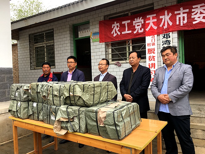 2018年4月24日,为纪念中共中央“五一口号”发布70周年,弘扬优良传统,助力精准扶贫,农工党天水市委会组织书画界和医疗卫生界农工党党员,前往精准扶贫帮扶点武山县洛门镇邓湾村,开展科技文化卫生“三下乡”活动。