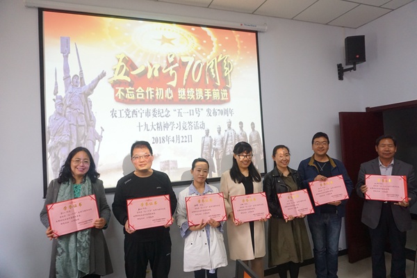 2018年4月22日,农工党西宁市委会组织各支委班子成员、骨干党员40余人,开展纪念中共中央“五一口号”发布70周年历史故事讲述活动和中共十九大精神学习竞答活动。