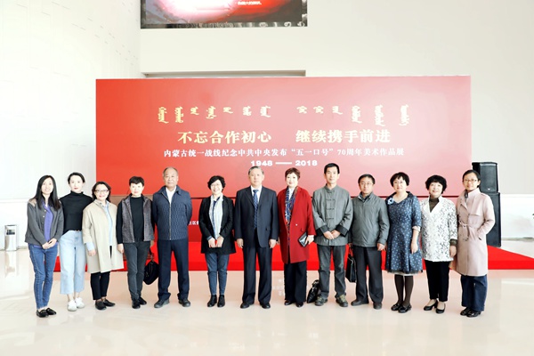 2018年5月2日上午,由中共内蒙古自治区委统战部主办、内蒙古各民主党派承办的“内蒙古统一战线纪念中共中央发布‘五一口号’70周年美术作品展”在内蒙古美术馆举行开幕式。中共自治区党委常委、统战部部长王莉霞出席开幕式并讲话。农工党内蒙古区委会主委云治厚,副主委王学东、闫敏出席开幕式。