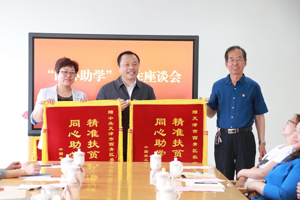座谈会上,王毅斋介绍了市委会帮扶大方“同心助学”工作的情况,及今后的工作方向,对西青区工委工作提出要求。他代表市委会向中共西青区委统战部、西青区教育局等参与单位赠送了锦旗。邓锋表示,在中共西青区委统战部的领导下,按照市委会的工作部署,工委将全力完成好“同心助学”工作任务。董秀琴、李祥表示,将一如既往地支持农工党天津市委会做好帮扶大方“同心助学”工作,为精准扶贫助力。