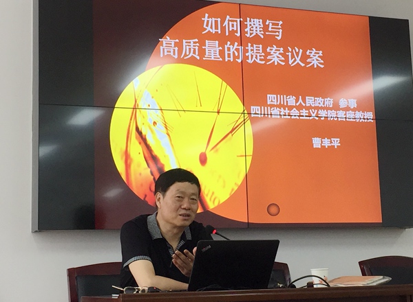 培训期间,四川省人民政府参事、四川省社会主义学院客座教授曹丰平作题为《如何撰写高质量的提案议案》的讲座,四川省社会科学院教授、四川省社会主义学院客座教授廖果作题为《供给侧改革下经济高质量发展研究》的讲座,四川省社会主义学院教研室副教授董小琴作题为《加强和创新社会治理的几个问题》的讲座。