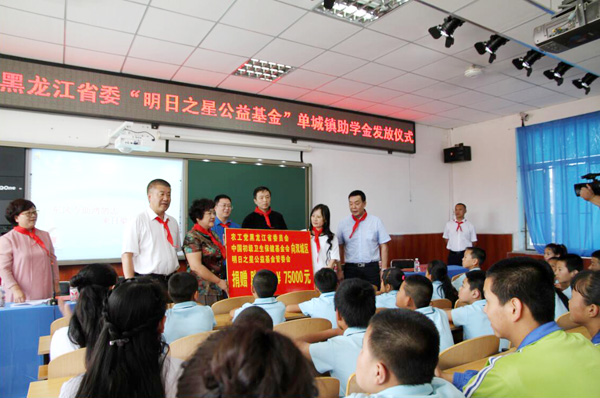 仪式上,农工党黑龙江省委会、中国初级卫生保健基金会、明日之星公益基金管委会向单城镇中心校贫困学生捐赠7.5万元助学金。捐助现场,掌声此起彼伏,受助学子和家长的脸上洋溢着幸福的笑容。蒋建国在致辞中表示,扶贫先扶智,助困先助学,让贫困地区的孩子掌握知识、改变命运是最有效的精准扶贫举措。今后,他们还将继续关注教育扶贫,持续开展扶贫助学、奉献爱心、传递温暖等一系列爱心活动,共同帮助贫困学子完成学业。