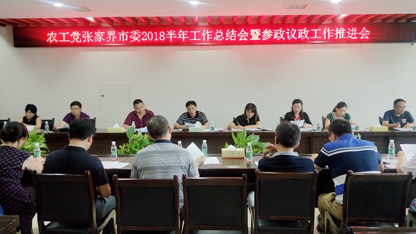 市委会传达了农工党湖南省委会、中共张家界市委统战部相关会议精神,组织学习座谈了《习近平新时代中国特色社会主义思想》、《习近平总书记关于人民政协工作的重要思想》,市委会及各支委负责人就2018半年工作情况作了汇报,参政议政专委会通报了专题调研进度及社情民意信息上报情况。