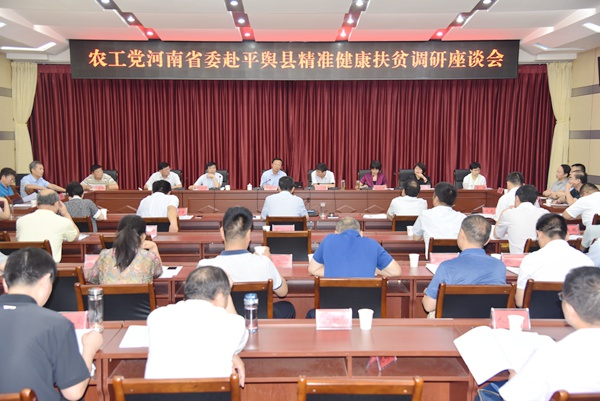 2018年7月15日,河南省政协副主席、农工党河南省委会主委高体健带队深入驻马店市平舆县,就“精准健康扶贫”进行专题调研。省委会专职副主委花亚伟,副主委李新有、雷雪芹等参加调研。驻马店市政协主席陈锋,中共驻马店市委常委、统战部部长姚新文陪同调研。