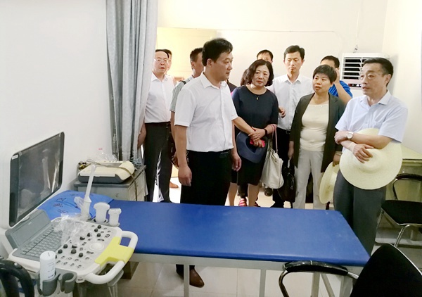 调研组一行重点考察了于集乡卫生院,实地查看了输液大厅、B超、心电图室等诊疗场所,详细了解了卫生院的软硬件设施情况。察看了由农工党安徽省委会捐赠的心电远程诊疗一体机设备的运行情况,并就智慧医疗项目、远程会诊及医务人员培训、硬件设施日常维护管理等与相关负责人进行了沟通和交流。
