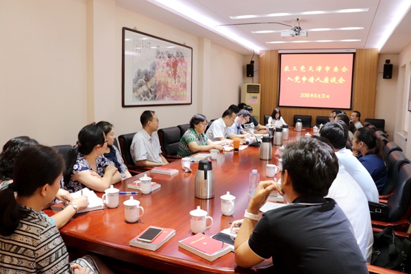 2018年8月31日下午,农工党天津市委会召开入党申请人座谈会。市委会专职副主委兼秘书长王毅斋出席会议并讲话,组织部部长张学梅主持会议。