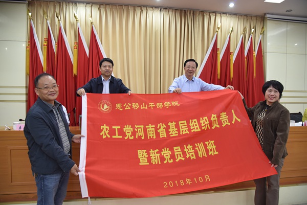 2018年10月15日至18日,农工党河南省委会在济源市愚公移山干部学院举办全省基层组织负责人暨新党员培训班。河南省政协副主席、农工党河南省委会主委高体健在开班式上作动员讲话并为学员讲党课。河南省政协提案委主任钱伟应邀出席开班式。中共济源市委副书记贾宏宇出席开班式并致辞。农工党河南省委会专职副主委花亚伟全程出席培训班并讲党课。省委会副主委李新有、雷雪芹,秘书长王丽亚等出席培训班开班式。