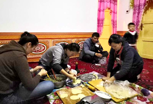 临行前一天,机关干部一起与亲戚们包了饺子,看到亲戚买买提不会包饺子,王少波就手把手教他,“这么一挤,一摁,饺子就成型了……饺子象征着团圆,也象征着团结……”在王少波的指导下,买买提的饺子越包越好,脸上挂满了笑容。不一会儿,一盘盘热气腾腾、香喷喷的饺子便包好了。