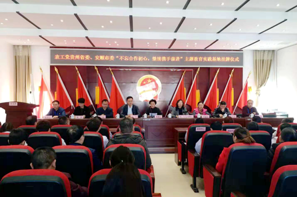 2018年11月9日农工党贵州省委会、安顺市委会“不忘合作初心,继续携手前进”主题教育活动实践基地挂牌仪式,在黄果树白水镇政府举行。农工党贵州省委会专职副主委黄惠玲,黄果树旅游区管委会副主任赵宁出席活动并讲话。会议由农工党安顺市委会主委刘飞主持。