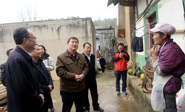 14日,调研组一行前往对口帮扶的牛场乡立新村考察。目的地离县城45公里左右,但是因为交通情况差,泥泞不堪加上坑坑洼洼,短短的45公里的路程却走了3个半小时。考察了村小学,详细了解学校贫困学生以及教师员工教学、生活情况后,调研组在立新村委会与村干部进行交流,了解该村贫困人口、农业生产、健康扶贫、产业扶贫等情况,以及脱贫攻坚过程中遇到的新情况、新问题。调研组随后到贫困户家中进行家访并进行慰问,深入了解贫困户生产生活等情况。回到牛场乡政府,调研组与乡干部座谈交流,听取该乡脱贫攻坚工作进展情况介绍和目前在教育、医疗、农业产业发展方面存在的短板。