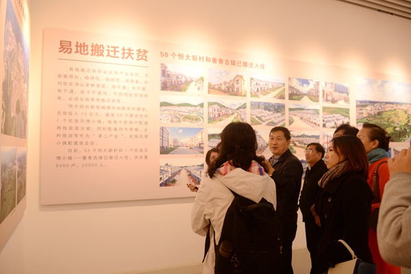 13日上午,调研组驱车近4个小时从上一站云南威信抵达贵州大方。刚一抵达便兵分两路,马光瑜带领部分调研组成员前往恒大集团的异地搬迁扶贫重点援建项目——奢香古镇进行考察,对恒大集团的总体援助计划和项目落实情况进行了解,也从第三方的口中侧面了解了当地贫困现状和脱贫情况。刘启德率领部分调研组成员来到大方县星宿乡麻岭村同心圆工程博爱家园精准扶贫项目进行实地调研,察看了便民服务站大楼和村民文化广场建设情况,核查村民使用生计金签订的“博爱家园生计金借款协议书”和励业金发放情况,还抽样查看贫困户的建档立卡户资料,检查贫困户出列情况。