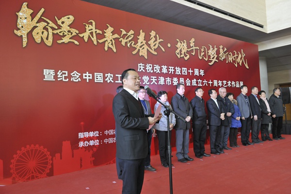 2018年12月7日,由农工党天津市委会举办的“翰墨丹青话春秋,携手圆梦新时代”庆祝改革开放四十周年暨纪念农工党天津市委会成立六十周年艺术作品展在天津美术馆隆重开幕。全国人大常委会委员、农工党中央副主席龚建明讲话并宣布展览开幕,中共天津市委常委、统战部长冀国强致辞。农工党天津市委会副主委侯欣一致开幕词。天津市政协原副主席、农工党天津市委会原主委赵克正出席。开幕式由农工党天津市委会专职副主委兼秘书长王毅斋主持。中共天津市委统战部副巡视员刘鸿玮、民革市委会专职副主委兼秘书长刘凯华、民进市委会专职副主委兼秘书长赵长龙,农工党天津市委会副主委乔佑杰、许洪玲、马延和和张智龙出席开幕式。