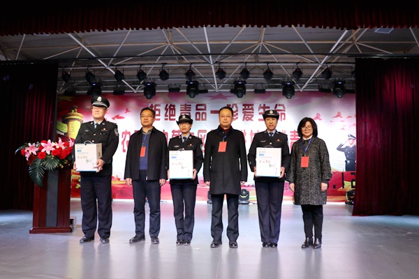 2018年12月19日上午,农工党内蒙古区委会走进内蒙古自治区女子强制隔离戒毒所,开展“远离毒品关爱生命”社会服务活动。区委会副主委蓝峰,农工党内蒙古人民医院委员会主委铁木尔,区委会办公室调研员纵丽娜,自治区戒毒管理局党委委员、副局长高秉文,农工党内蒙古区委会医疗专家队,区委会文化艺术工作委员会部分委员,自治区女子戒毒所领导班子成员、民警职工及全体戒毒人员共计400余人参加了活动启动仪式。